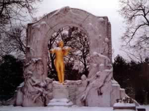 5月的维也纳,紫丁香、金合欢的芳馨四处洋溢,大街两旁的七叶树开满了白色的花儿。小施特劳斯漫步在这绿树荫下,“蝙蝠”的乐曲声仿佛仍在他的耳边回响……可这却是他最后一次漫步街上了。